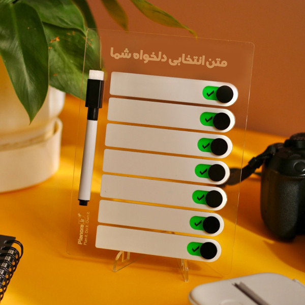 نوتیک یک ابزار کاربردی برای برنامهریزی روزانه و مدیریت روتینها است که با طراحی مینیمال و ساختار مقاوم از جنس پلکسی تولید شده است. این محصول دارای ۷ جای خالی برای ثبت کارها و تیکهای مکانیکی واقعی است که تجربهای ملموس از پیشرفت و انجام کارها را ایجاد میکند. امکان نوشتن با ماژیک وایتبرد قابلپاک شدن، استفادهی چندباره و نصب در موقعیتهای مختلف، نوتیک را به انتخابی کارآمد برای خانه و محل کار تبدیل کرده است. برای حفاظت از سطوح فلزی، پشت مگنتها محافظ ضدخش شفاف نصب شده تا هنگام استفاده روی یخچال یا سطوح مشابه، آسیبی ایجاد نشود. این محصول همراه با پایه رومیزی پلکسی شفاف ارائه میشود تا علاوه بر نصب مگنتی یا دیواری، قابلیت استفاده روی میز کار یا میز مطالعه نیز فراهم باشد.