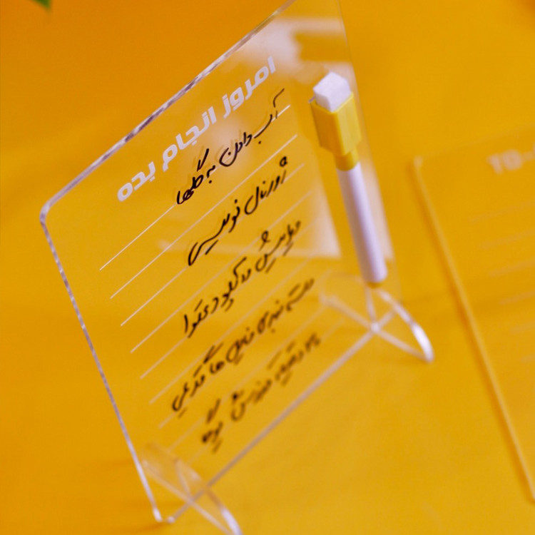 نوتیک یک ابزار کاربردی برای برنامهریزی روزانه و مدیریت روتینها است که با طراحی مینیمال و ساختار مقاوم از جنس پلکسی تولید شده است. امکان نوشتن با ماژیک وایتبرد قابلپاک شدن، استفادهی چندباره و نصب در موقعیتهای مختلف، نوتیک را به انتخابی کارآمد برای خانه و محل کار تبدیل کرده است. برای حفاظت از سطوح فلزی، پشت مگنتها محافظ ضدخش شفاف نصب شده تا هنگام استفاده روی یخچال یا سطوح مشابه، آسیبی ایجاد نشود. این محصول همراه با پایه رومیزی پلکسی شفاف ارائه میشود تا علاوه بر نصب مگنتی یا دیواری، قابلیت استفاده روی میز کار یا میز مطالعه نیز فراهم باشد.