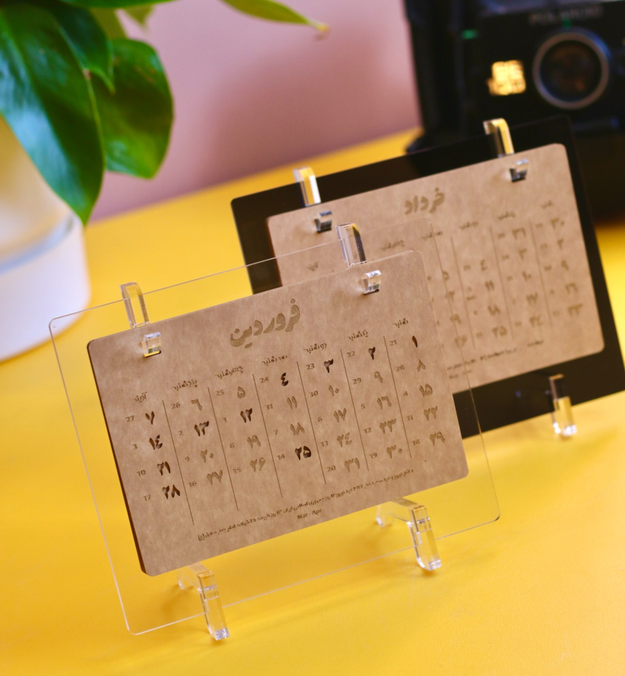 بدنه از پلکسی باکیفیت ساخته شده و با پایههایی با طراحی منحصر بهفرد پلنورا تکمیل شده است. این پایهها علاوه بر استحکام، جلوهای مدرن و لوکس ایجاد میکنند و تقویم را به یک عنصر دکوراتیو تبدیل میکنند.